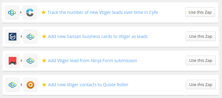 It can take a lot to get data flowing between the applications that a business uses. Vtiger’s Zapier integration eliminates that work. The Zapier connector detects activity in any of 400+ possible apps you might use, and creates or updates Vtiger records based on information from those apps. That means you can create contacts from scanned business cards, opportunities when you receive a message on Twitter, tickets from a Facebook comment, and more all without a single mouse click or keystroke.