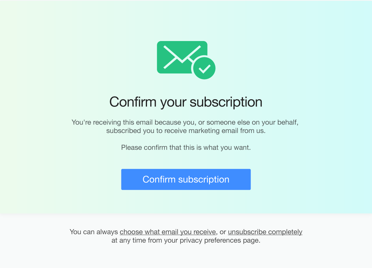 With GDPR in place, marketers are required to get expressed consent from contacts to add them to an email list. This means you can no longer purchase email lists to shoot your bulk emails. The best way to capture permission is through a double opt-in email. For instance, when a prospect subscribes to your newsletter while submitting a contact form in exchange for a valuable content, you can send an opt-in confirmation email to get explicit permission.