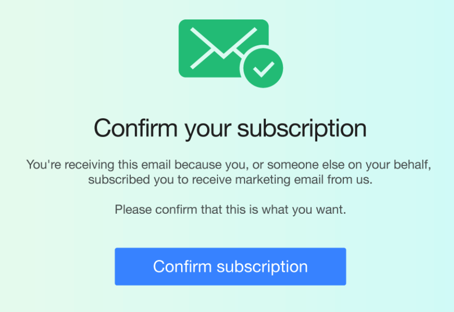 Double opt-in emails work like this – when someone indicates that they want to receive your email (either verbally, or by checking a box on a webform) you send them an email containing a special link. If they click it, their click is recorded, and they’re added to your email list.