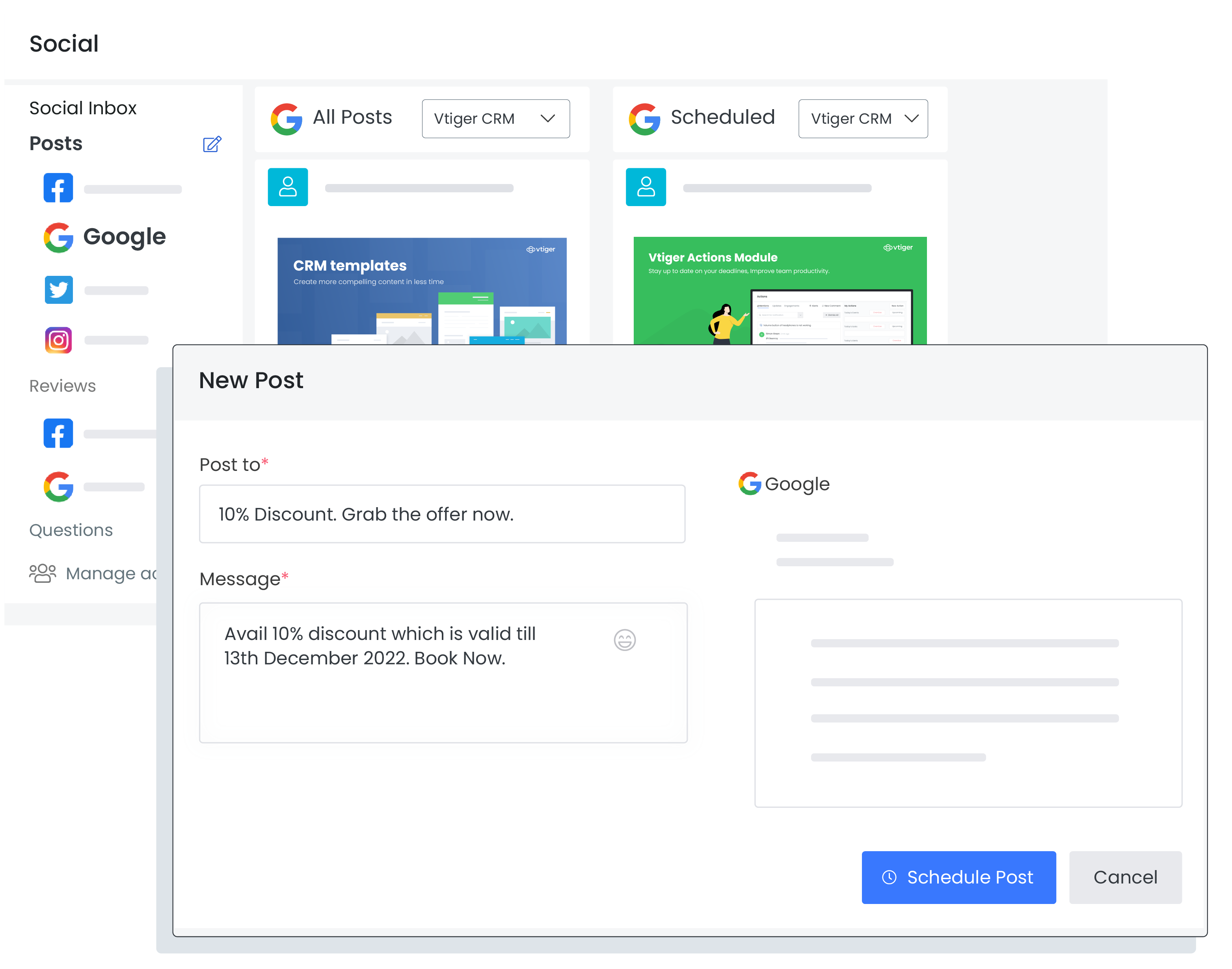 To know more about it, please click on the step-by-step guide on Vtiger Google My Business integration.