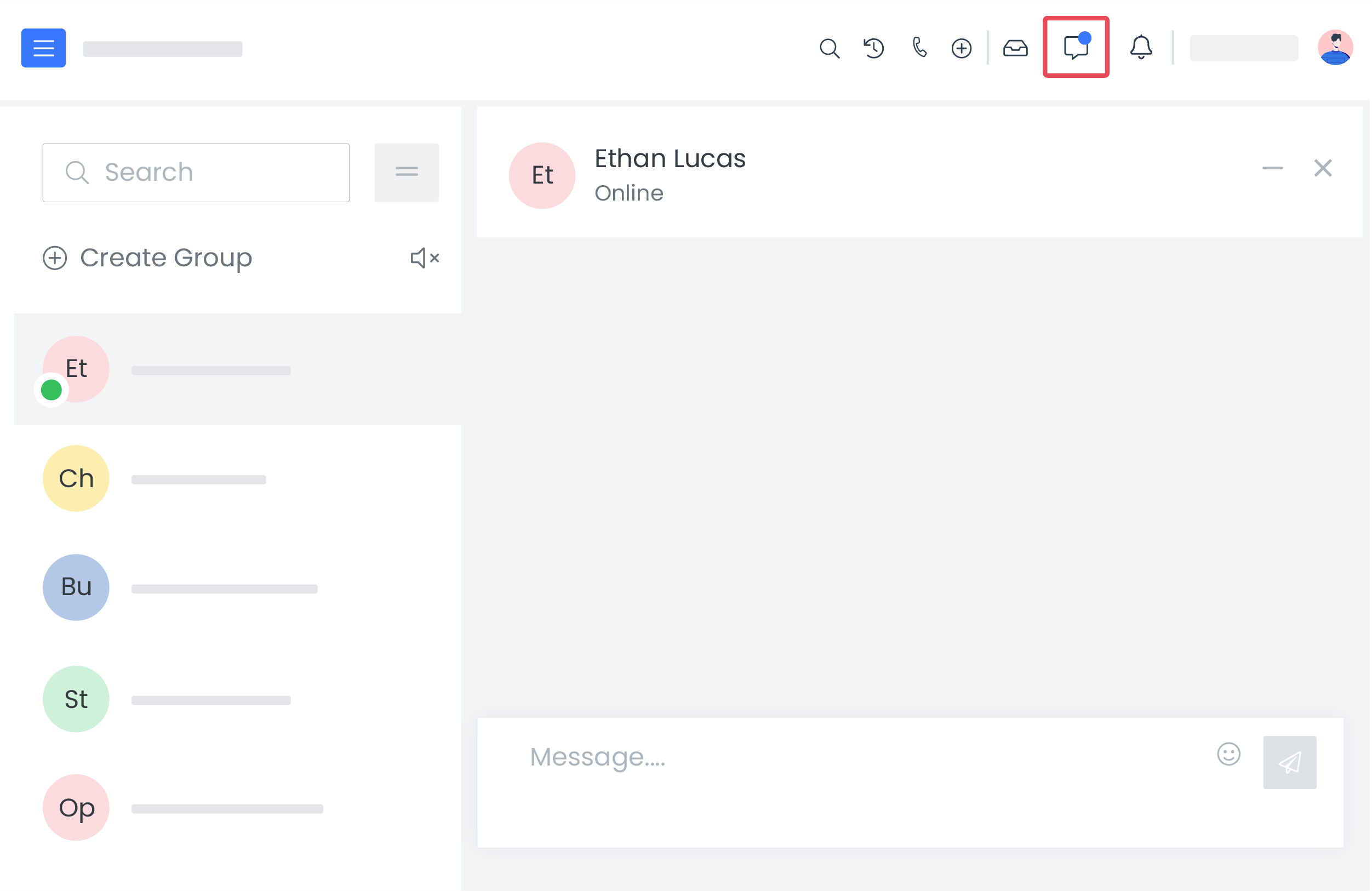 The Internal Chat in Vtiger allows you to perform multiple actions besides creating groups or sending messages. Let us understand that below: