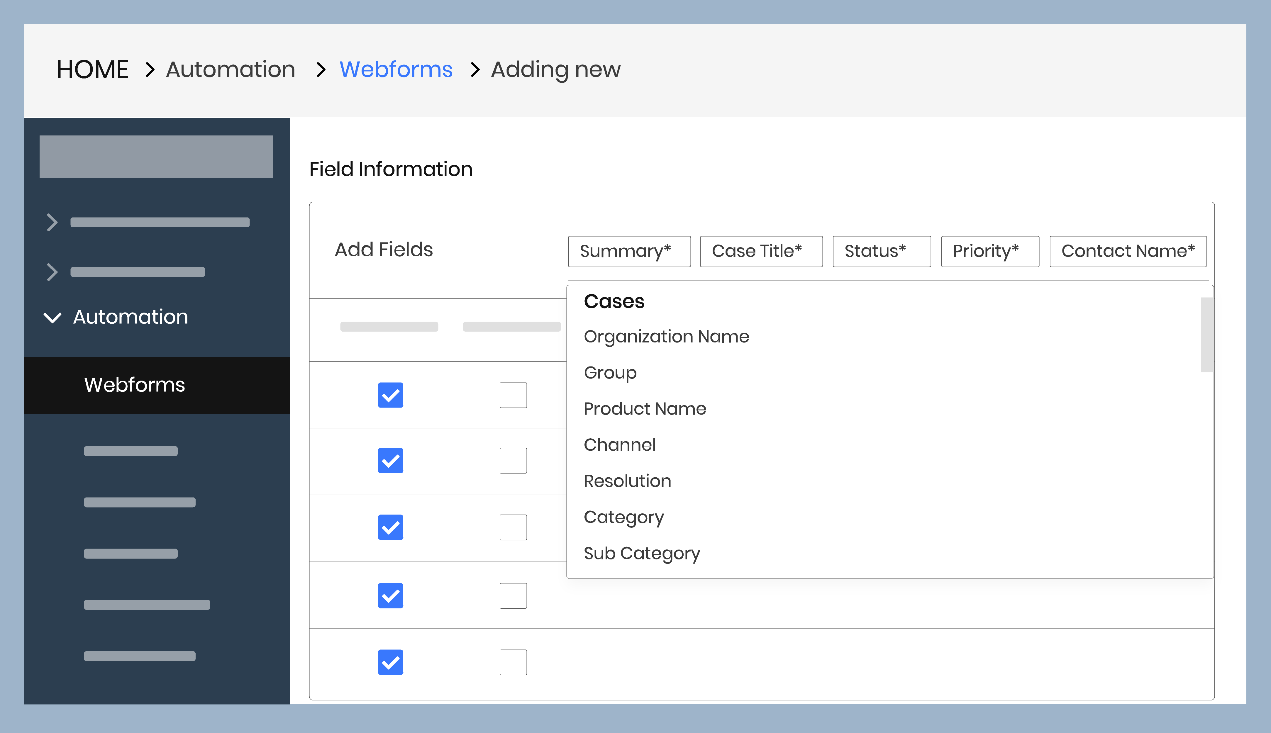 With Vtiger, you can collect data to different modules; cases, contacts, leads, deals, etc. Select the primary module you would want to capture data for and a secondary module to capture necessary data in a related module.