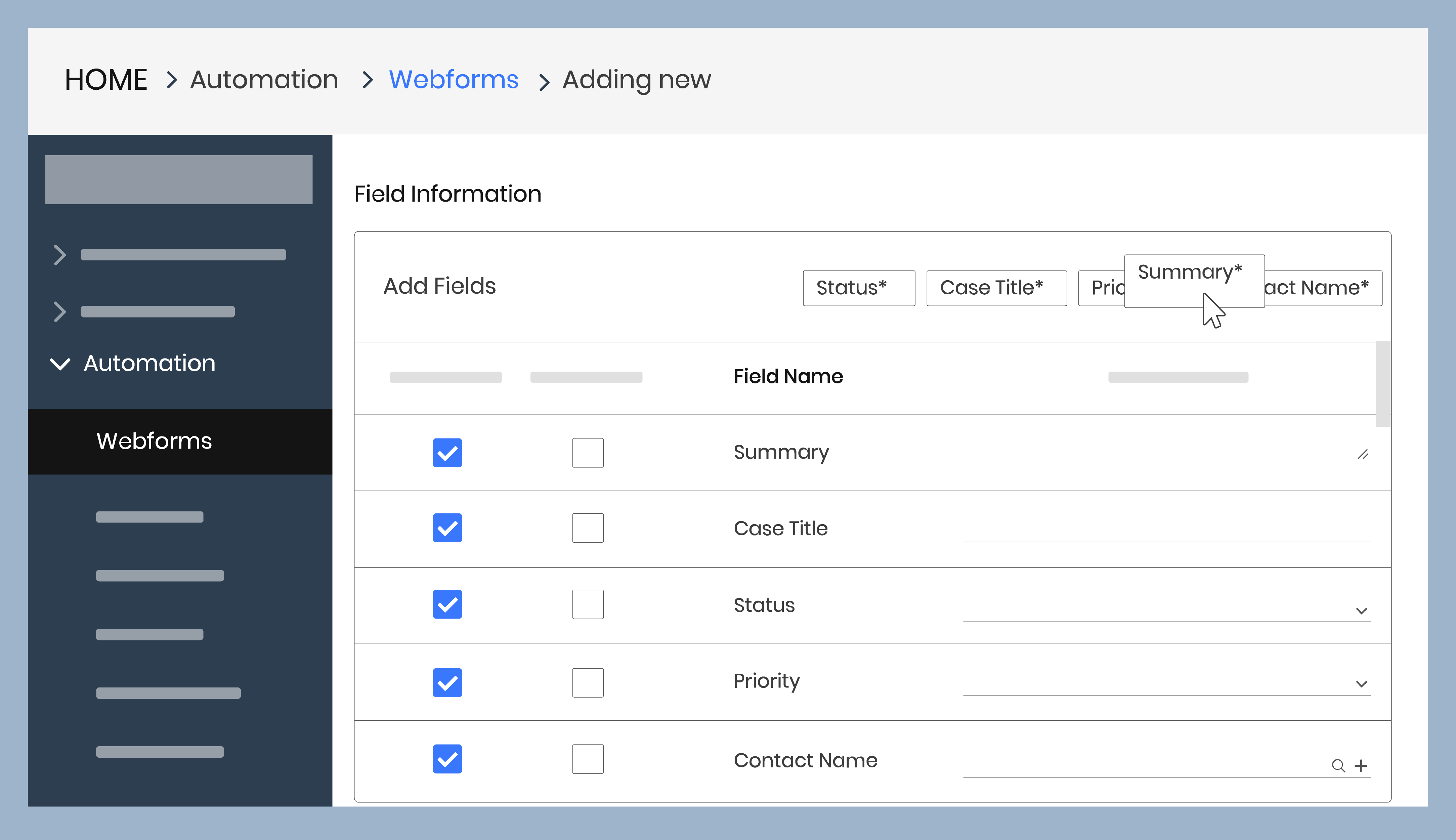 Webform Fields is the crucial section of the webform creation. This section allows you to select fields to capture contact data, make them mandatory, override current values, and ways of handling duplicate data creation.