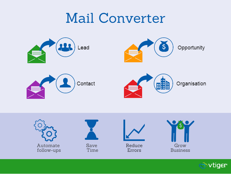 Vtiger’s Mailroom is one such tool, saving an average of 1 hour of administrative work per week. The Mailroom does this by automating part of the email review process, and wherever necessary, creating lead, contact, and opportunity records from emails, as well as attaching future emails from prospects to their CRM records.